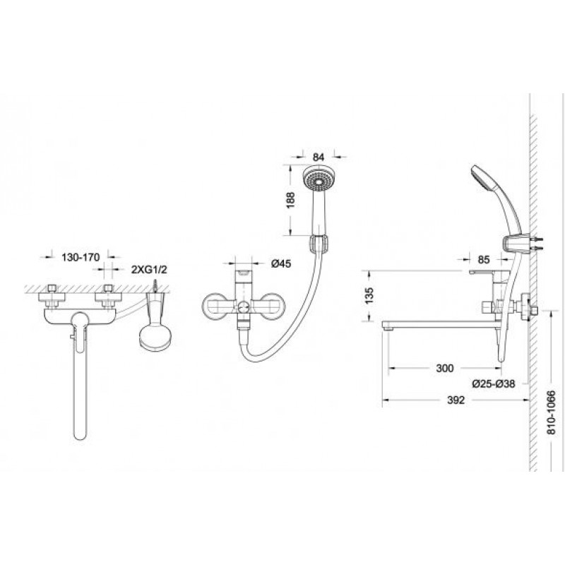 | Оснащение | эксцентрики, настенный держатель, душевой шланг, душевая лейка, аэратор, переключатель потоков |