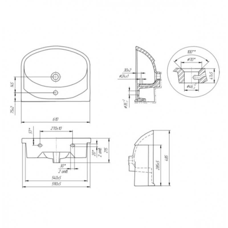 | Готовые отверстия под смеситель | на 1 отверстие |