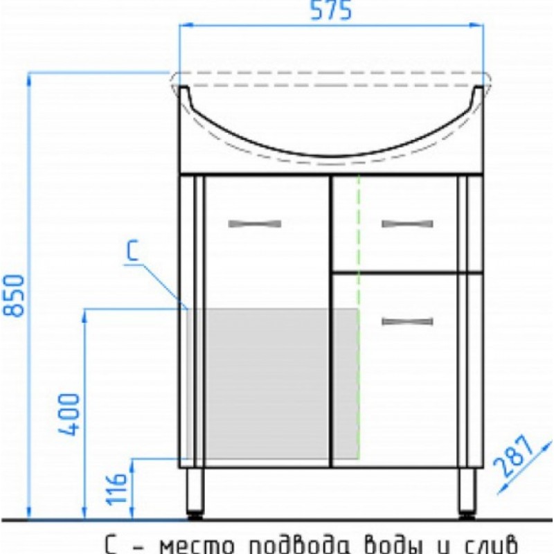 | Ширина тумбы, см | 57.5 |