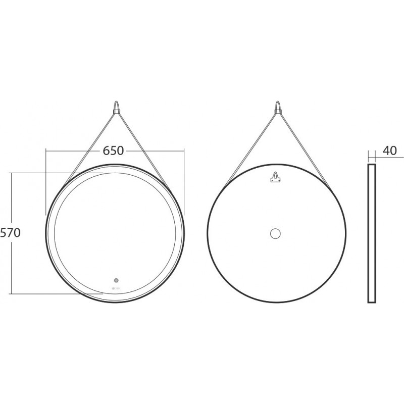 Зеркало Owl 1975 Viken 65, с подсветкой, черный ремень